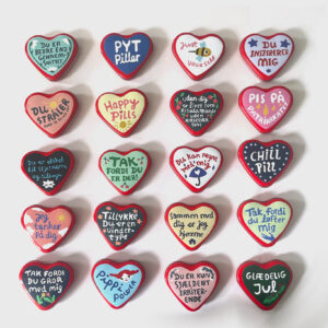 Hjerteæsker i metal med slikpastiller